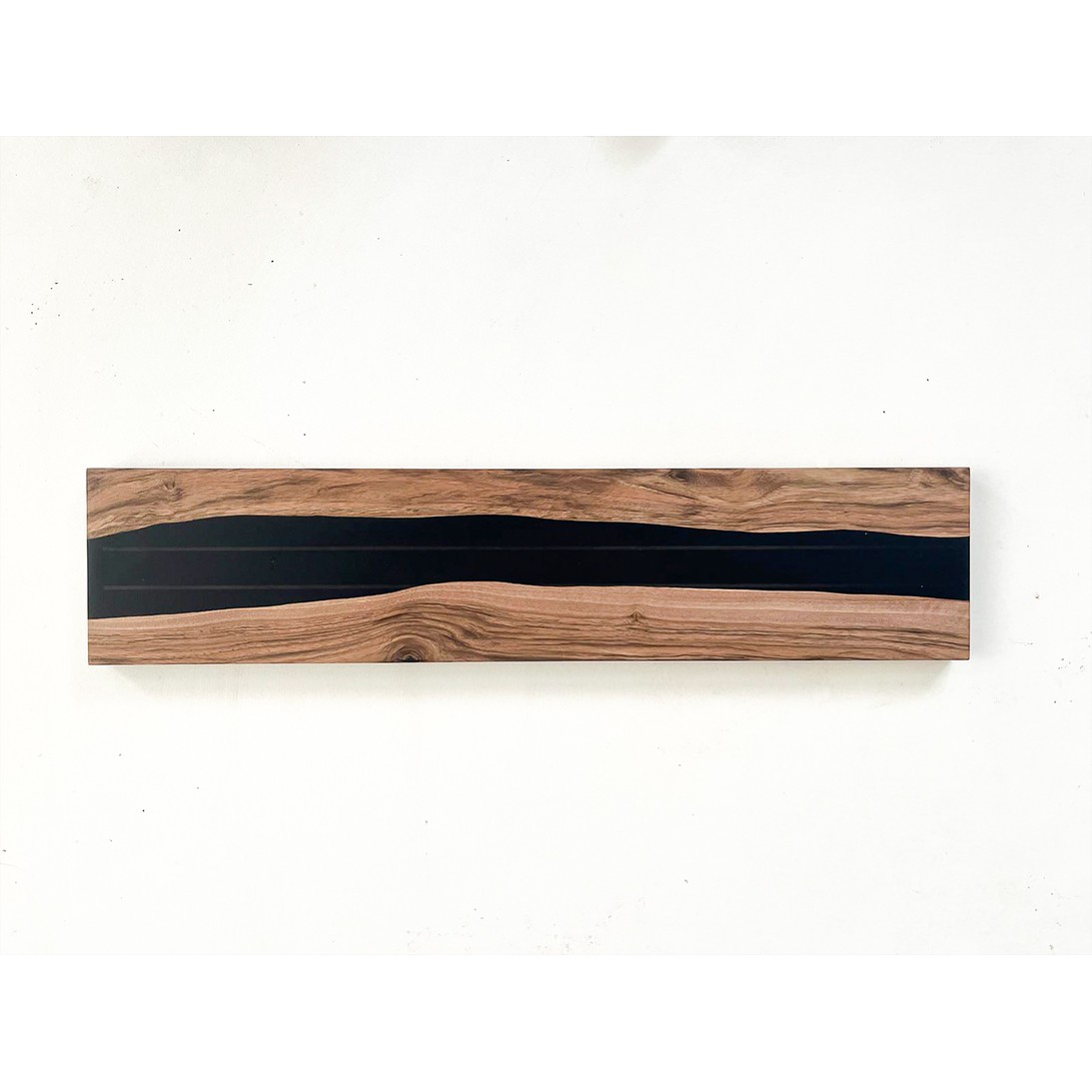 Porte couteaux en noyer brut et Epoxy noir aimanté.
