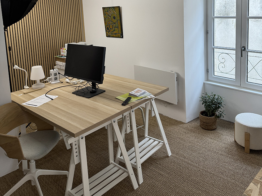 Nous sommes tombés sous le charme de cet immeuble, avec cette belle vitrine qui donne directement sur la place des Epoux Laurant à Celles-sur-Belle, à 2 pas de l'Abbaye. Bien que encore dans on jus, nous y avons décelé un véritable potentiel : le rez de chaussée en open-space, lumineux et chaleureux et l'étage en petits bureaux plus cosy et feutrés mais tout aussi fonctionnels.