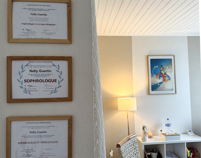 Elle a obtenu une spécialisation en périnatalité et en sevrage tabagisme et fait partie du réseau « La Bulle des Emotions ».